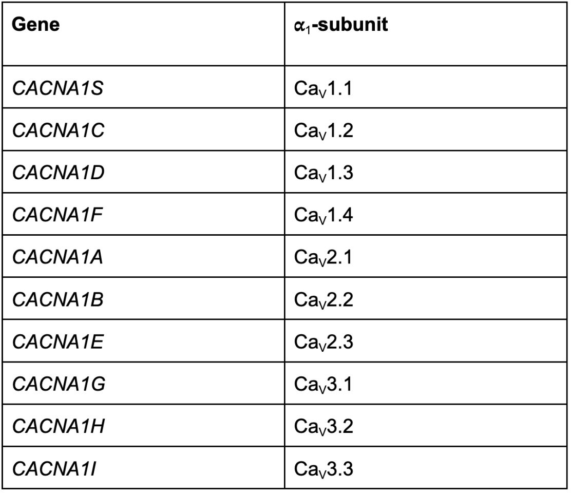 The human genome has 10 genes that contain instructions to make the CaV calcium channels (see table below). The calcium channel superfamily is split into three groups: CaV1, CaV2, and CaV3 based on specific properties.